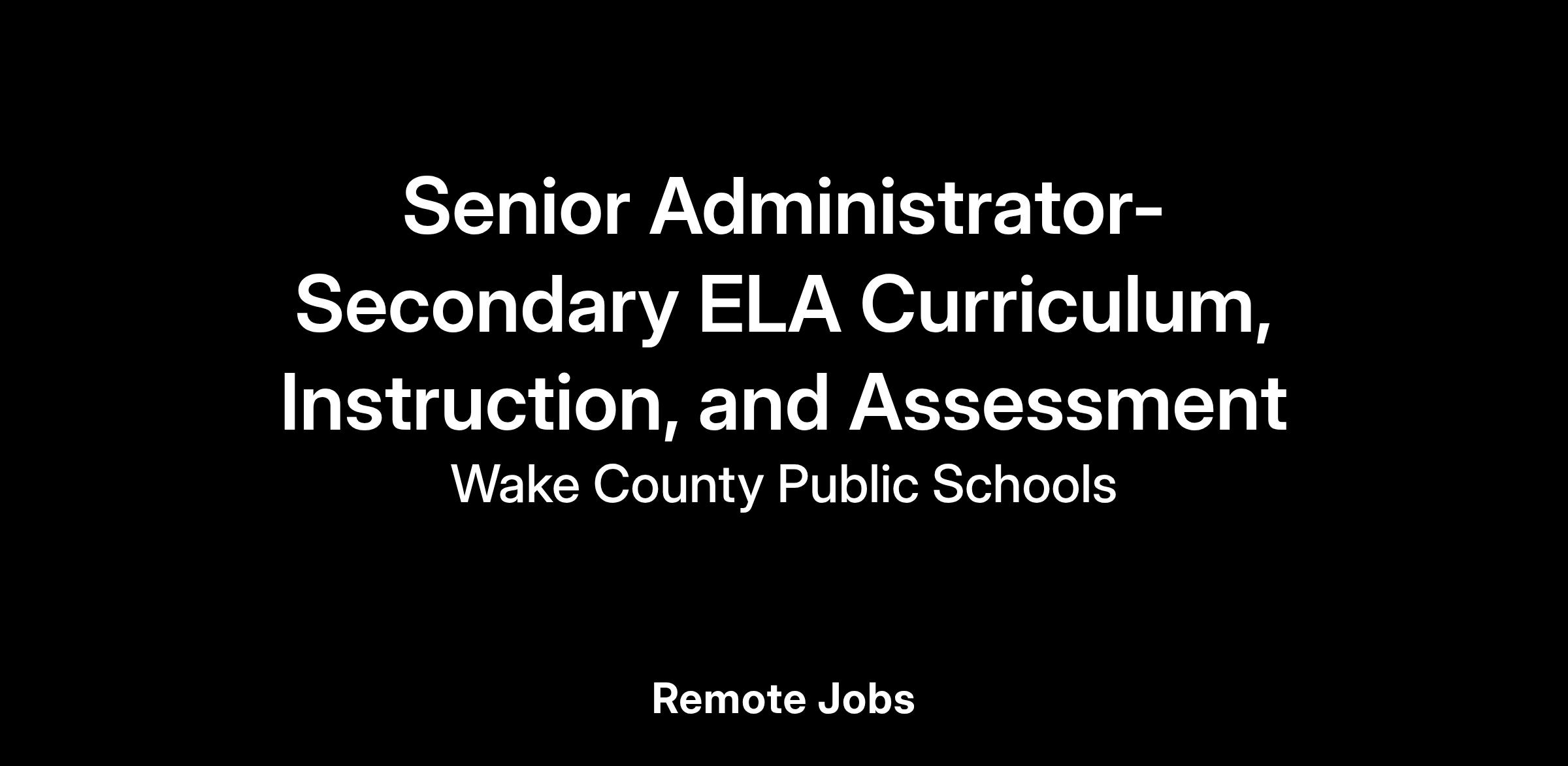 Senior Administrator-Secondary ELA Curriculum, Instruction, and Assessment