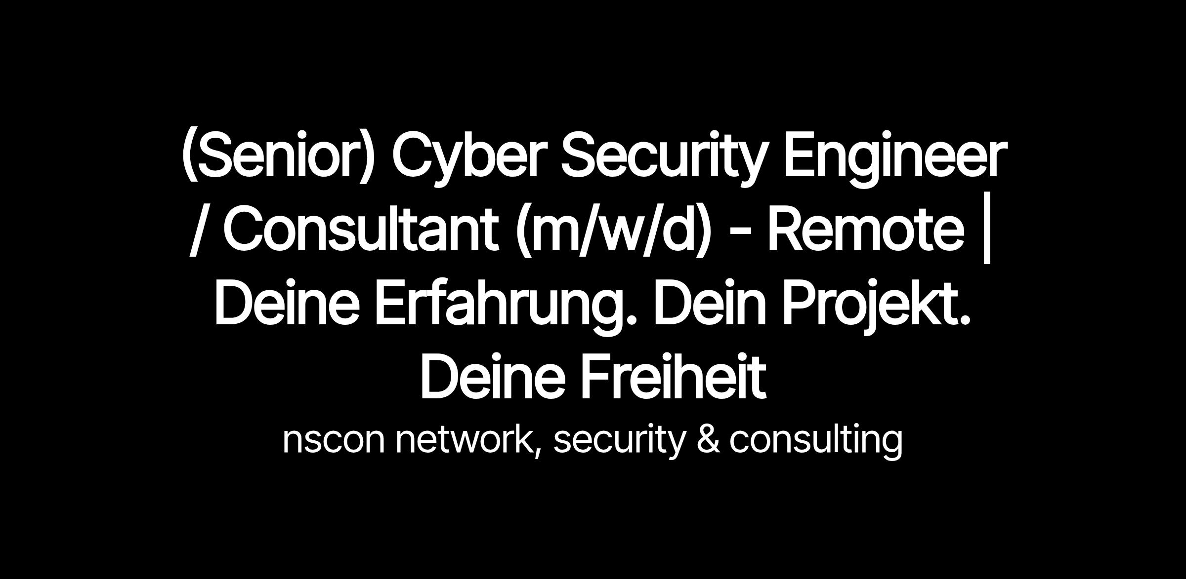 (Senior) Cyber Security Engineer / Consultant (m/w/d) - Remote | Deine Erfahrung. Dein Projekt. Deine Freiheit