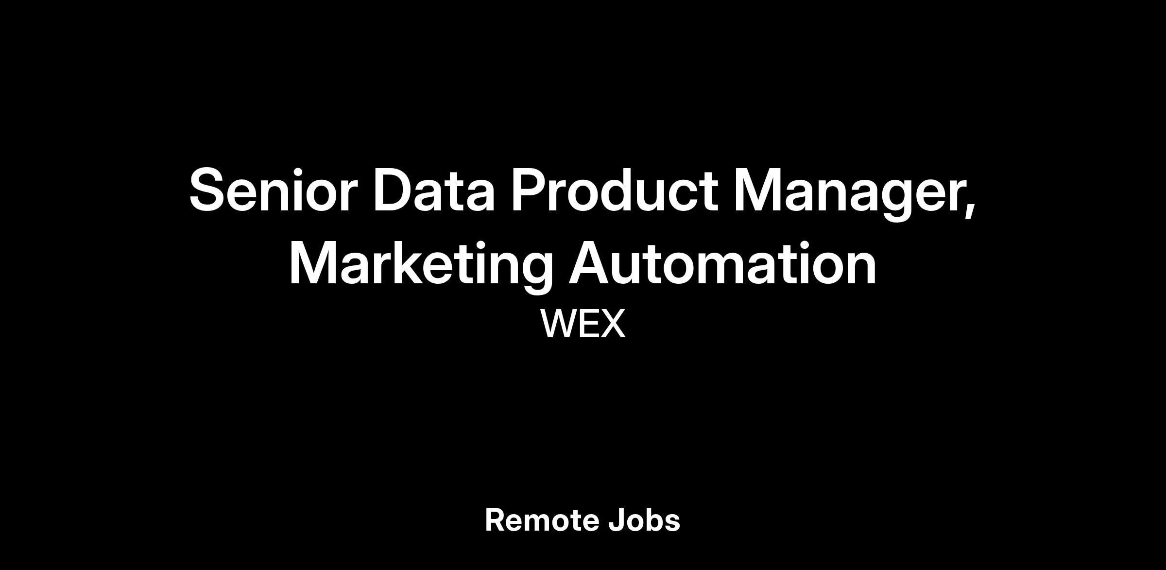 As we lean into our mission to “simplify the business of running a business”, we're expanding our data capabilities to deliver smarter, more personalized, and automated customer experiences. We seek an experienced Senior Data Product Manager to lead the strategy and execution of our Marketing Automation initiatives. In this role, you’ll define how WEX collects, unifies, and activates customer data across our business lines — Mobility, Corporate Payments, and Health — enabling data-driven marketing and engagement. Partnering with marketing, data, and technology teams, you’ll drive a roadmap that enhances data quality, accelerates performance, and powers seamless, personalized customer journeys across all channels.