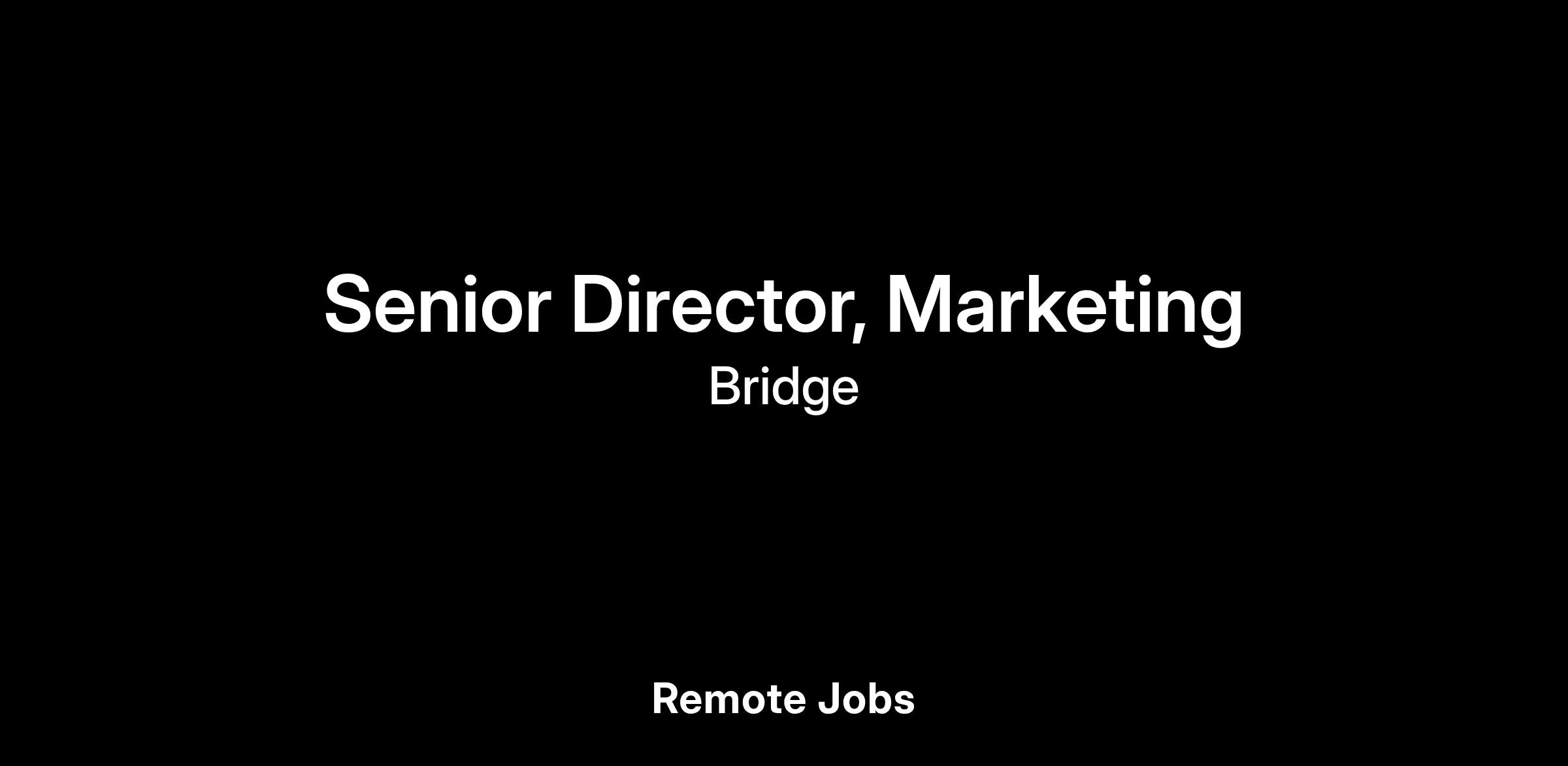 BRIDGE is currently seeking a Senior Director of Marketing who will be responsible for leading our marketing strategy and execution. The ideal candidate will be be a visionary leader with a deep understanding of our business, scaling B2B marketing organizations, and driving pipeline generation all while elevating our brand awareness, and enabling sales success in a fast-paced, high-growth technology environment.