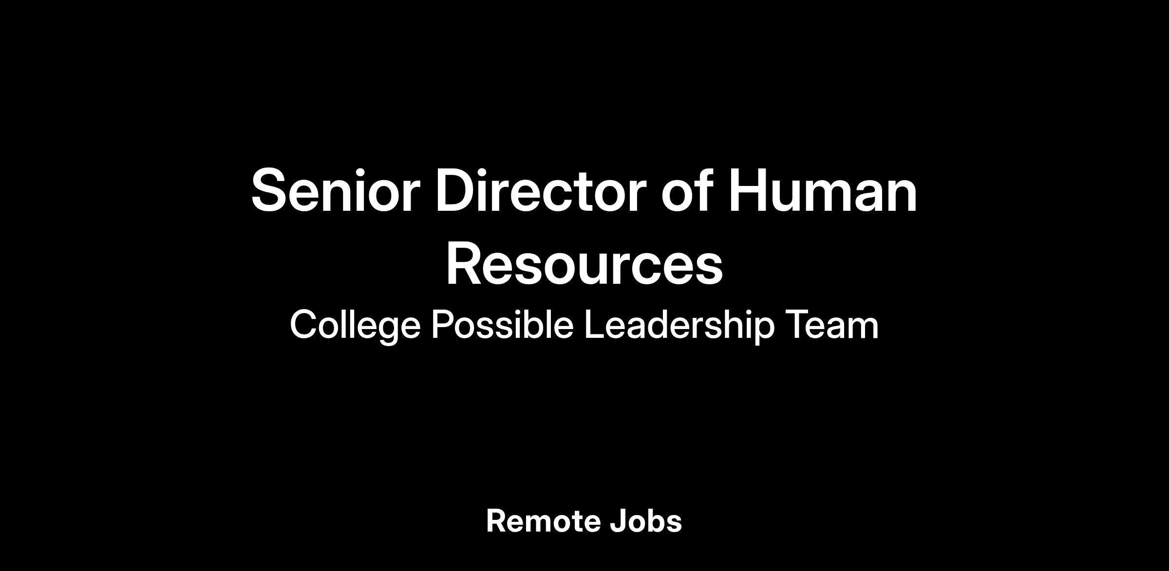 The Sr. Director of Human Resources is integral to the culture, effectiveness, and impact of College Possible:
