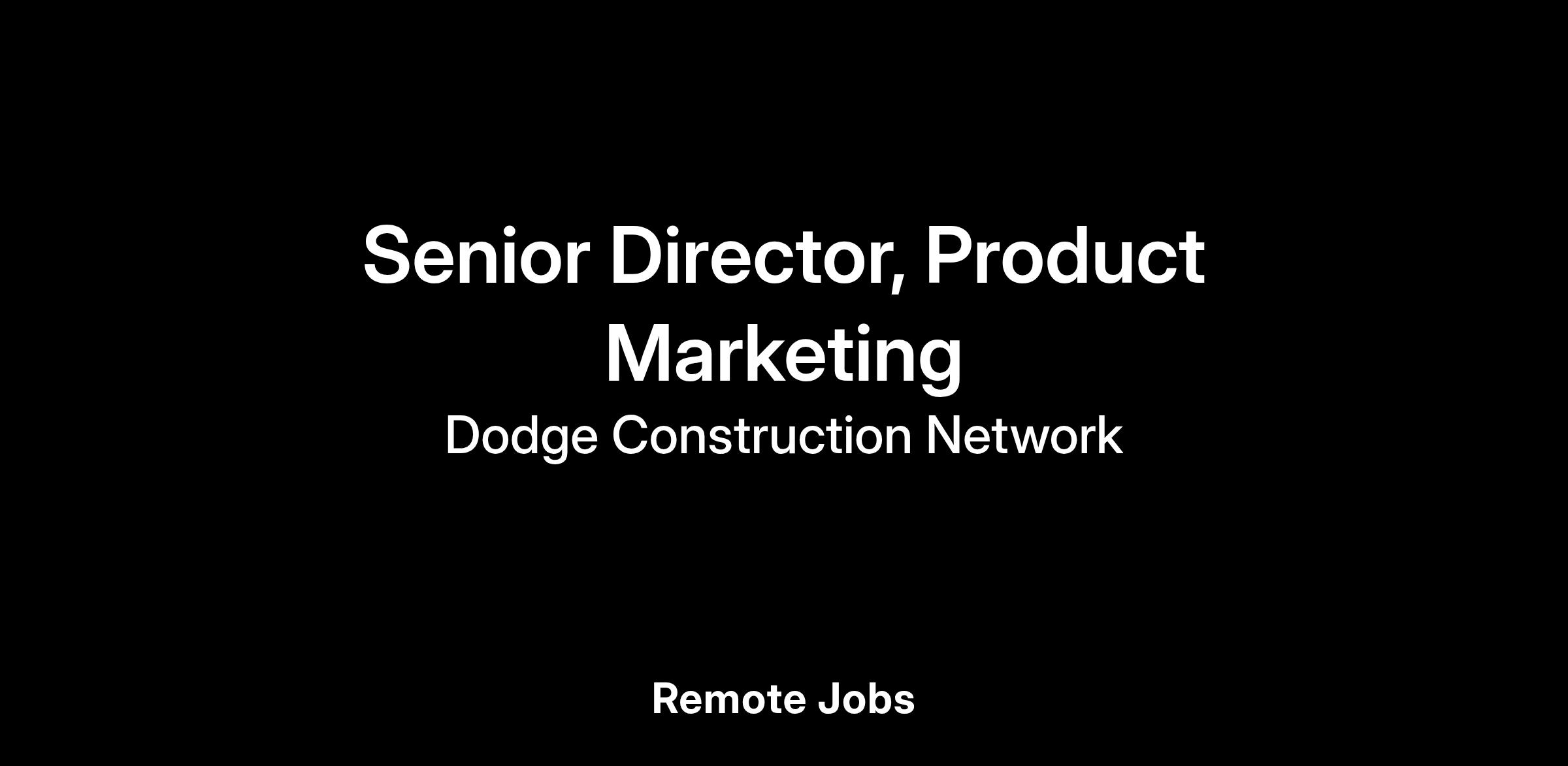 Dodge Construction Network (Dodge) is seeking an exceptional Senior Director, Product Marketing to define how Dodge products are positioned, messaged, and experienced in the market. This leader will shape the stories that connect our products to the real-world success of our customers—driving conversion, retention, and advocacy across the buyer journey.