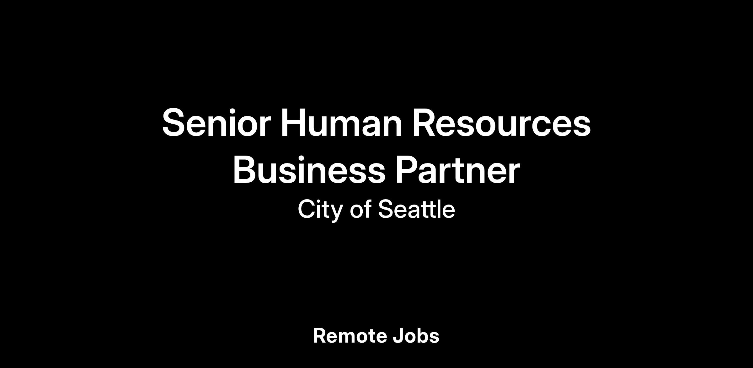 The City of Seattle believes in the diversity of our people, ideas, and experiences and is committed to building an inclusive culture that is representative of the community we serve. Seattle Human Resources (SHR) provides services for our diverse workforce to ensure employees are recruited equitably, managed fairly, are well-trained, supported, and assigned job duties to accomplish City’s goals. The Service Delivery team supports 700+ employees in 20 unique departments and executive offices. We have an opportunity for a Senior HR Business Partner to join our team.