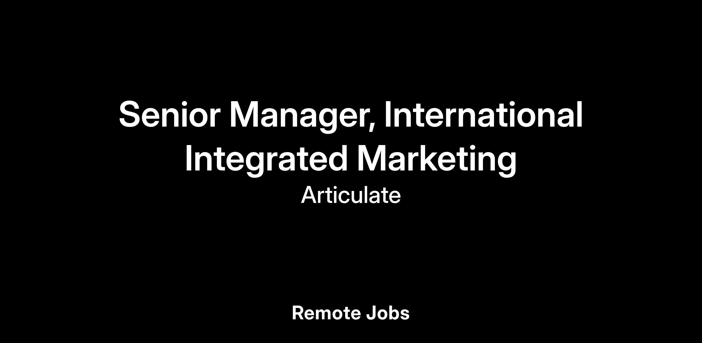 Articulate is looking for a Senior Manager, International Integrated Marketing to help set the strategy and lead execution of international growth marketing efforts across LATAM, APAC, and EMEA. This role will oversee a small but growing team, currently two Associate Managers focused on developing and executing integrated marketing campaigns in LATAM and APAC.