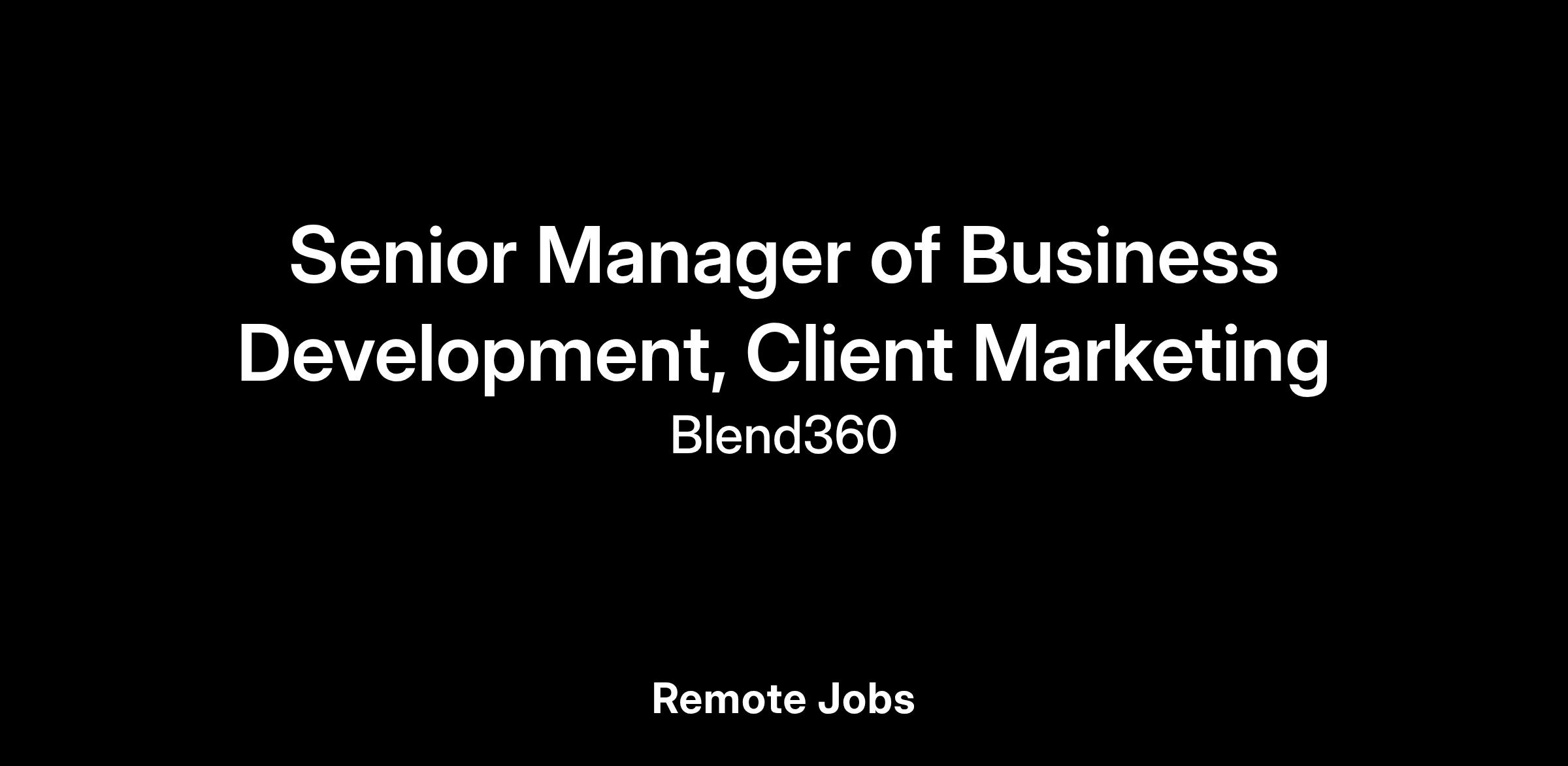 We are seeking a Senior Manager of Business Development, Client Marketing to contribute to our client’s next level of growth and expansion.