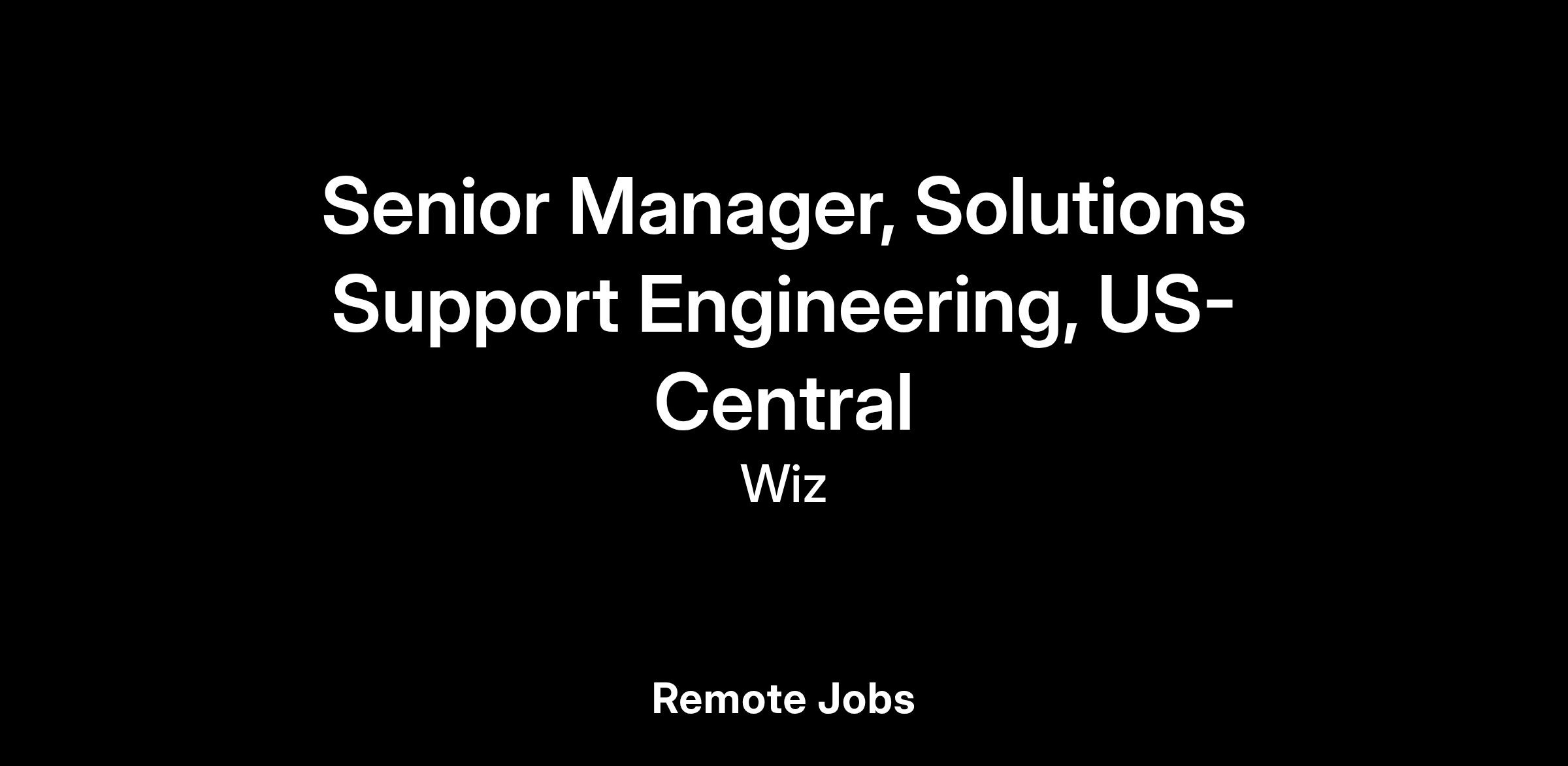 As a Senior Manager, Support Engineering, you will be a part of a global team responsible for providing outstanding technical support experience. In this role, you will lead a team of highly technical Solutions Support Engineers providing world class support on Wiz products and solutions.