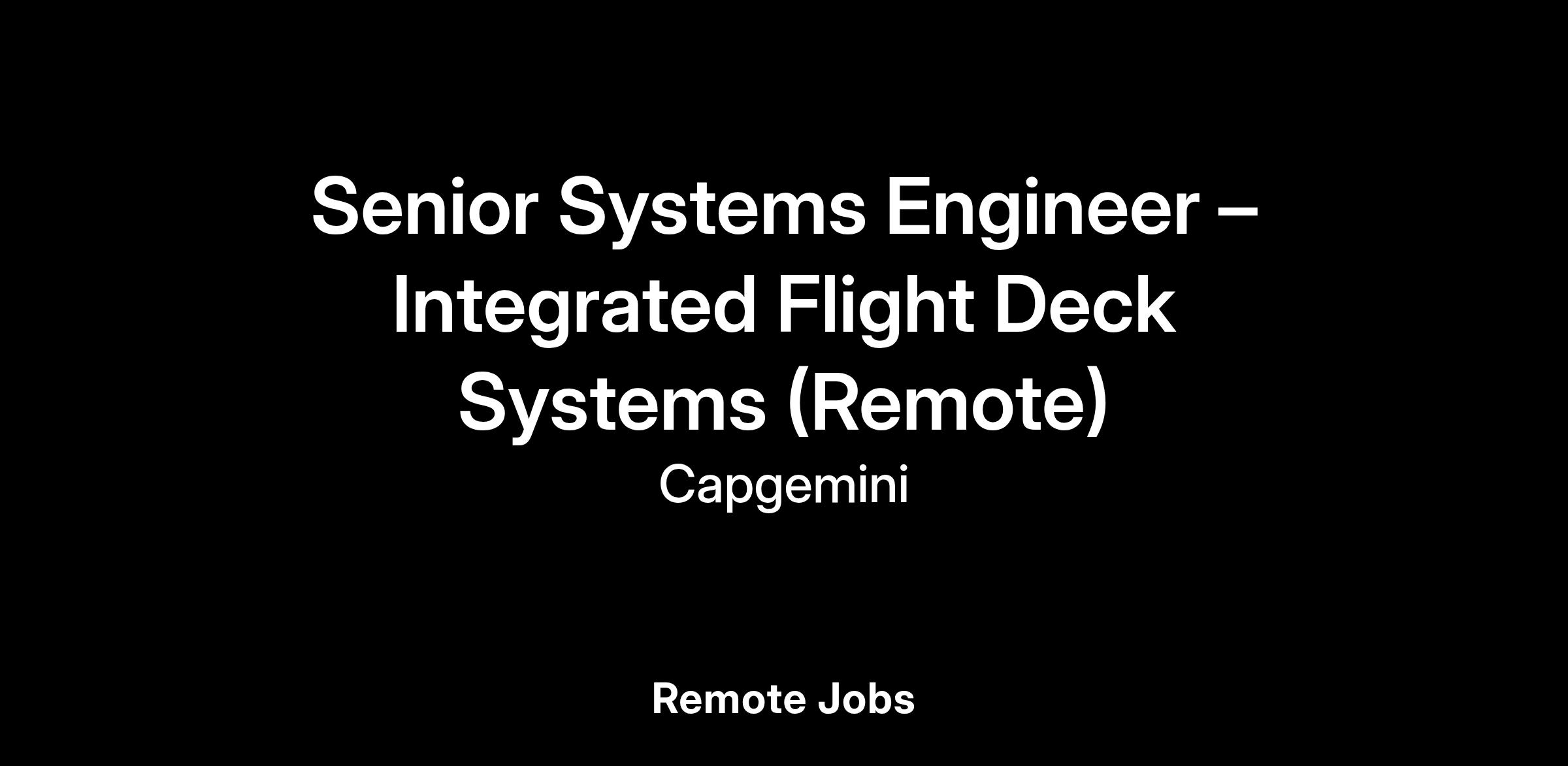 Senior Systems Engineer – Integrated Flight Deck Systems (System Development & Integration) (Remote)