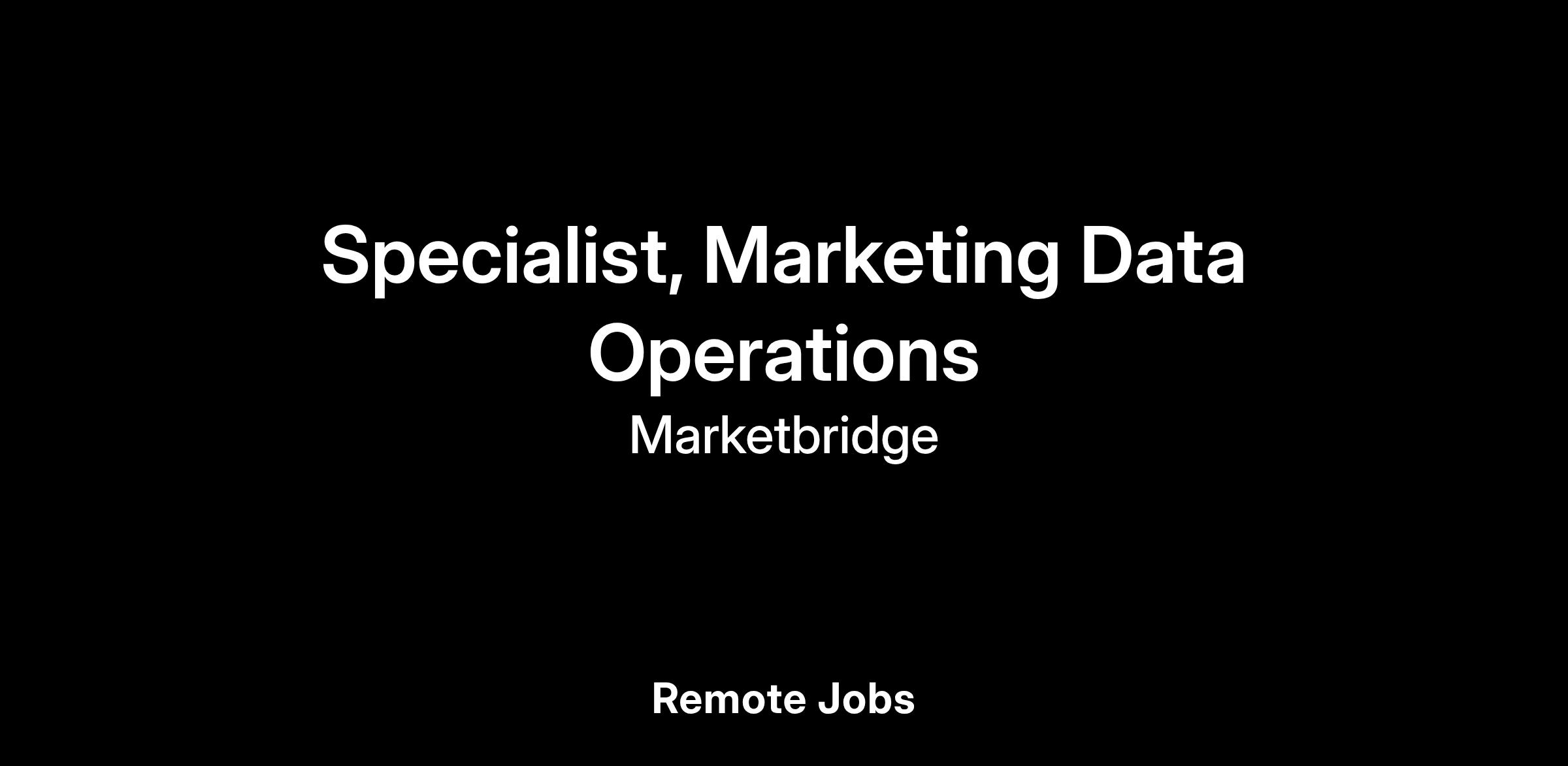Marketbridge is seeking a Specialist, Marketing Data Operations to support the design, implementation and maintenance of data workflows, automations, pipelines and integrations that power multi-channel marketing and sales programs. This role is ideal for a technically skilled and detail-oriented professional who thrives on building reliable, automated, and scalable data solutions that enable marketing campaign activation, personalization, and reporting.