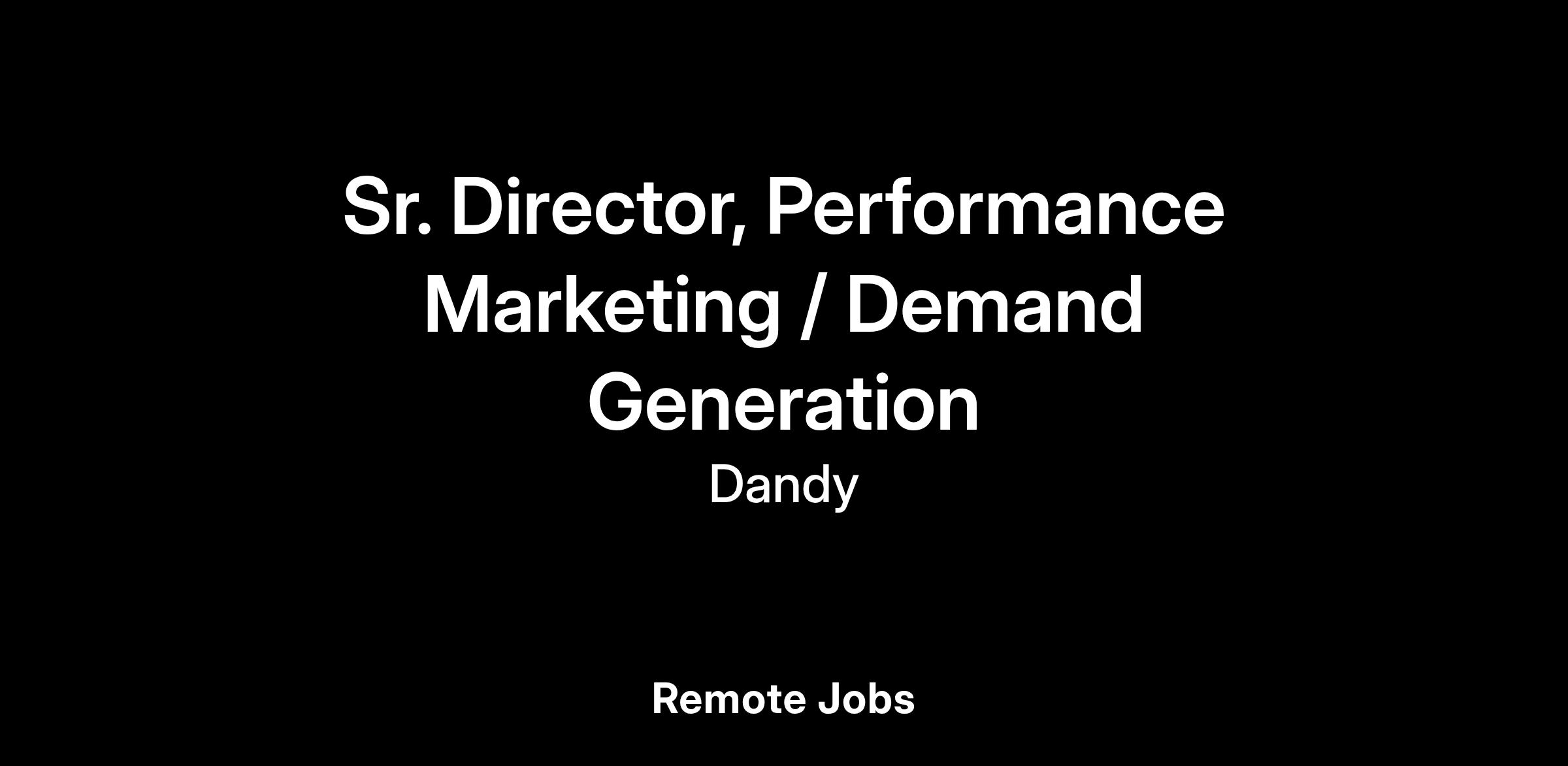 Dandy is seeking a Sr. Director of Performance Marketing / Demand Generation to lead the design, execution, and growth of our global demand generation engine. This role is mission-critical to our next phase of growth, with a sharp focus on driving high-volume customer acquisition and building a best-in-class inbound marketing funnel. You will define the strategy, inspire a high-performing team, and collaborate cross-functionally to deliver measurable, predictable, and repeatable pipeline growth.