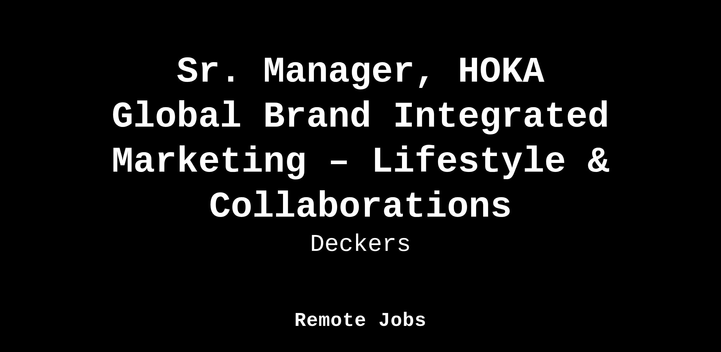 Job Title: Sr. Manager, HOKA Global Brand Integrated Marketing – Lifestyle & Collaborations
