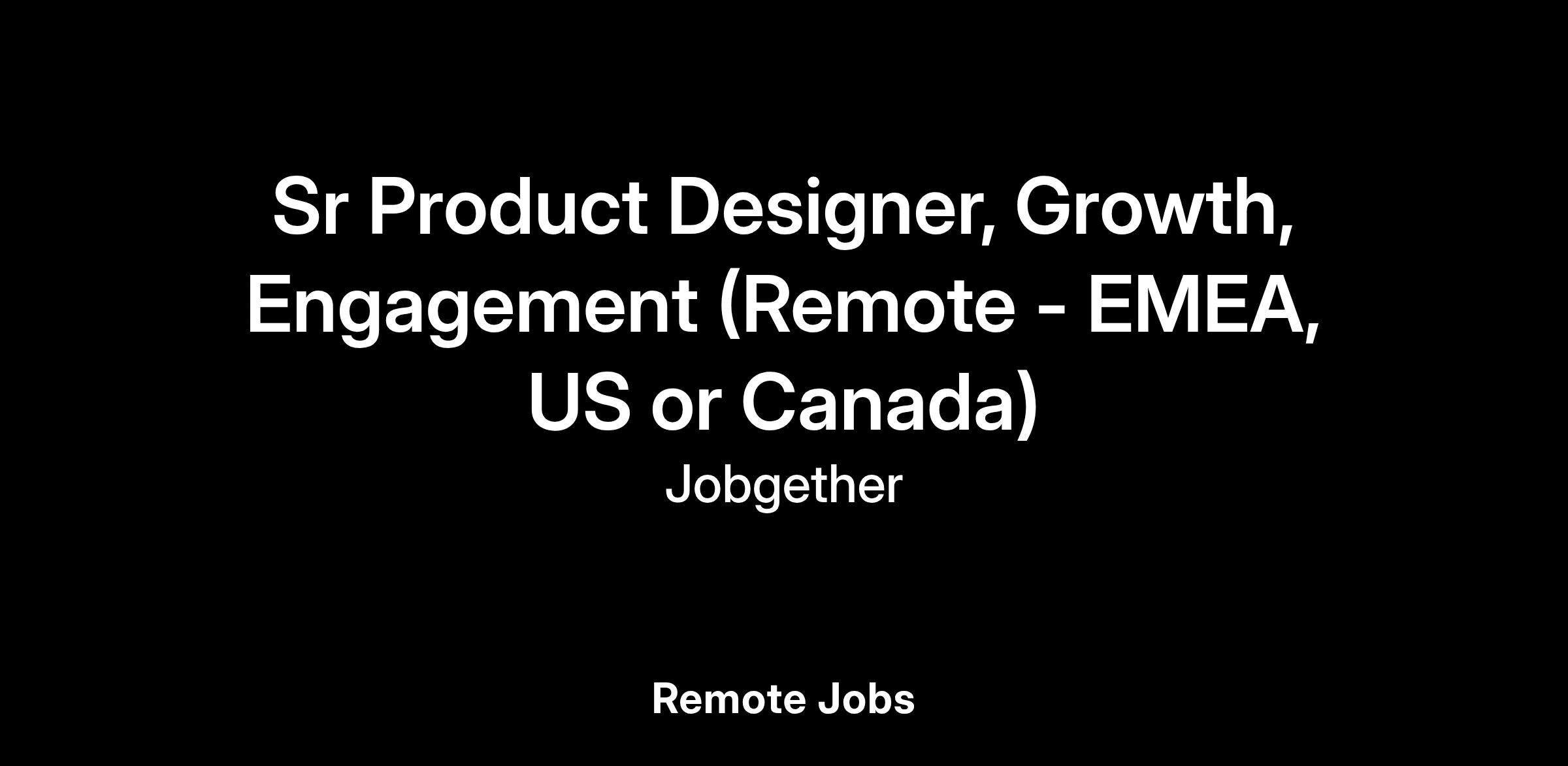 DescriptionThis position is posted by Jobgether on behalf of a partner company. We are currently looking for a Sr Product Designer, Growth, Engagement in EMEA, US or Canada.