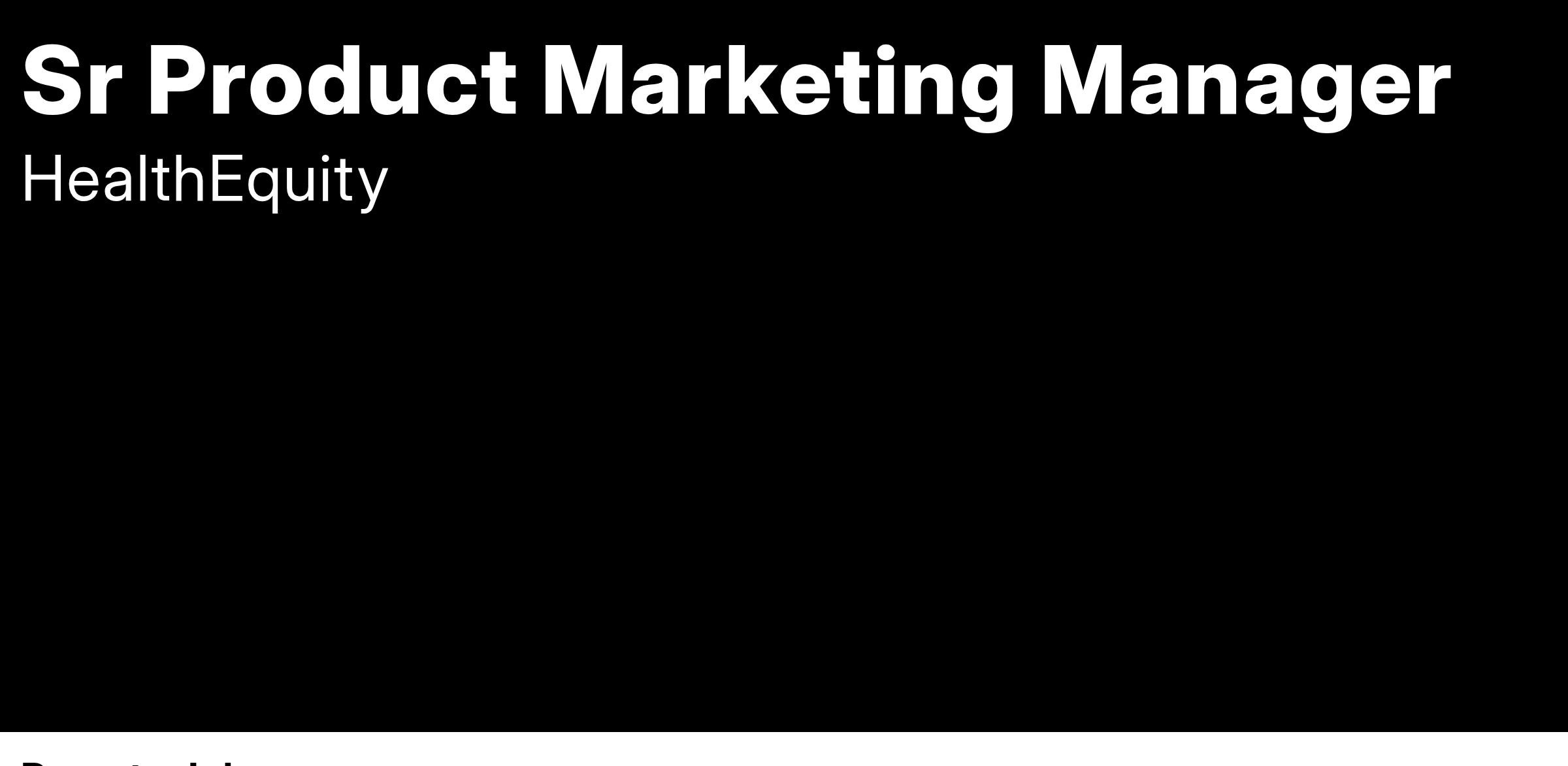 HealthEquity has a vision that by 2030 we will make HSAs as wide-spread and popular as retirement accounts. We are passionate about providing a solution that allows American families to connect health and wealth. Join us and discover a work experience where the person is valued more than the position. Click here to learn more.
