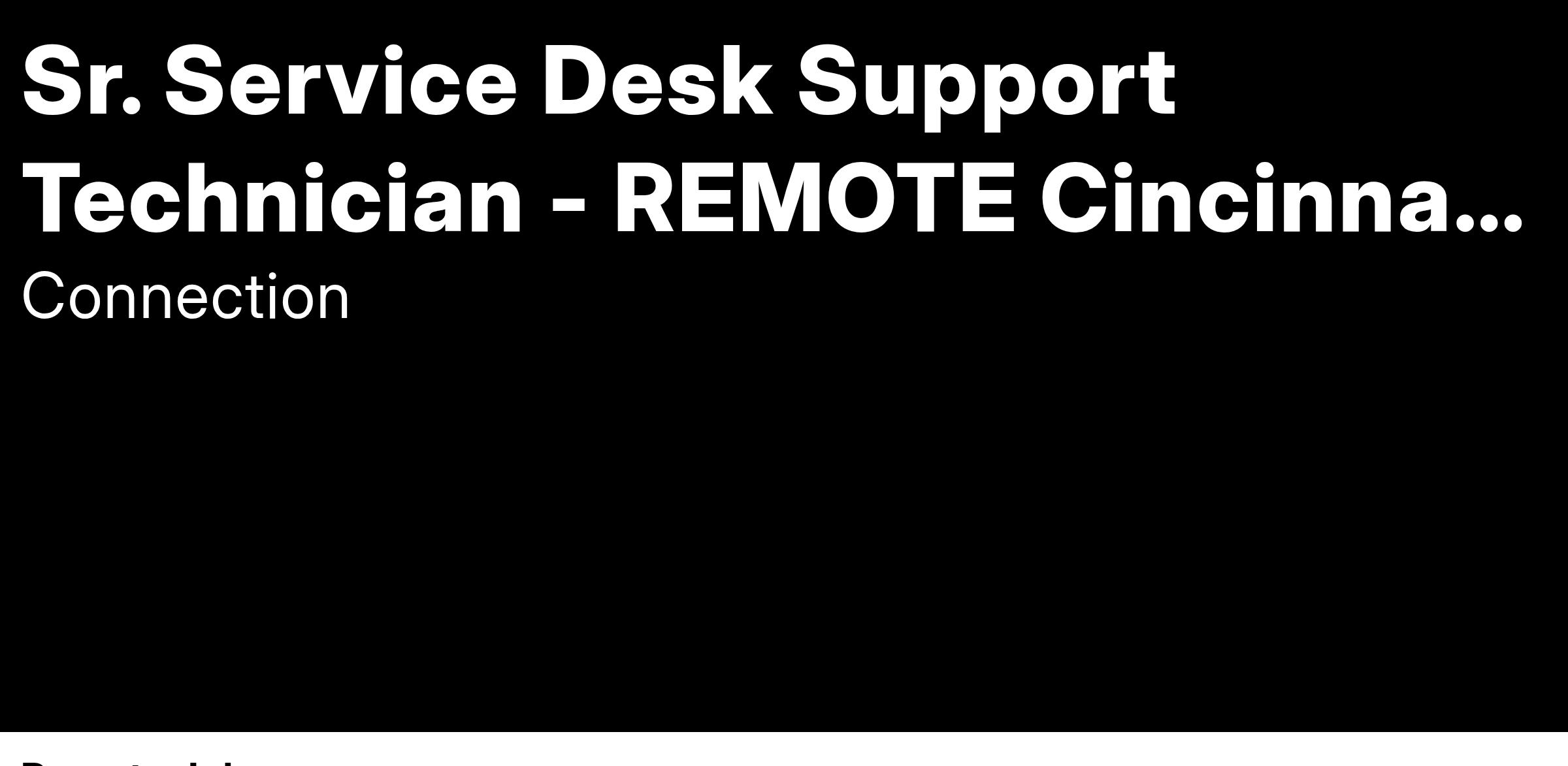 Connection has a fantastic opportunity through our Technical Staffing division for a Senior Desktop Support Technician II. This is remote opportunity near the Cincinnati, OH area only. The opportunity is based on a contract to hire model offering great benefits.