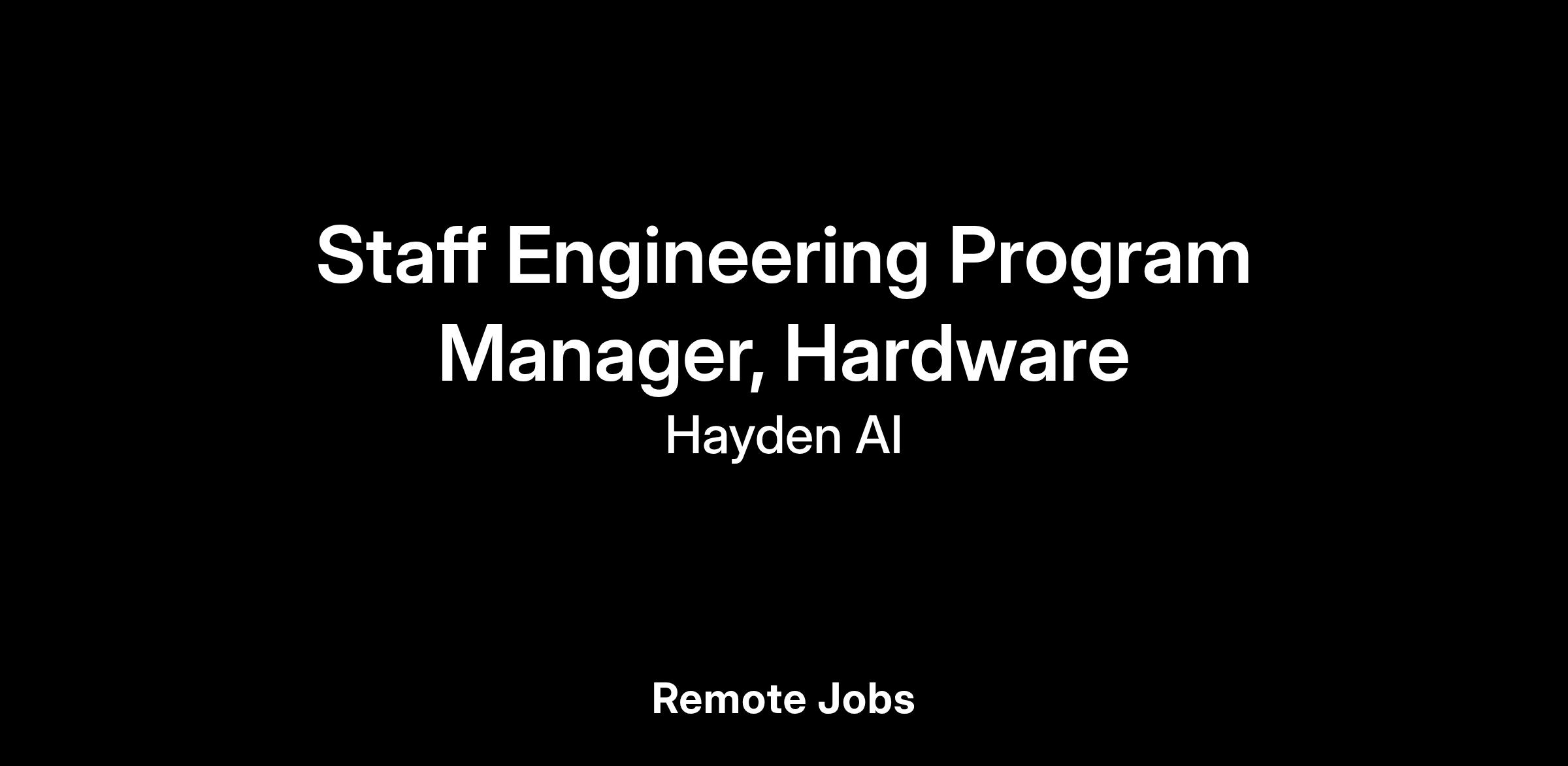 Hayden AI is looking for a Senior Engineering Program Manager to own the full hardware product lifecycle from concept to end-of-life. This role will work across engineering, product management, business, and operations to plan and execute programs to deliver Hayden AI’s class leading perception platform. In this role they will lead a multi-disciplinary effort across electrical, mechanical, industrial, compliance, validation, manufacturing, and operations to meet product and business objectives