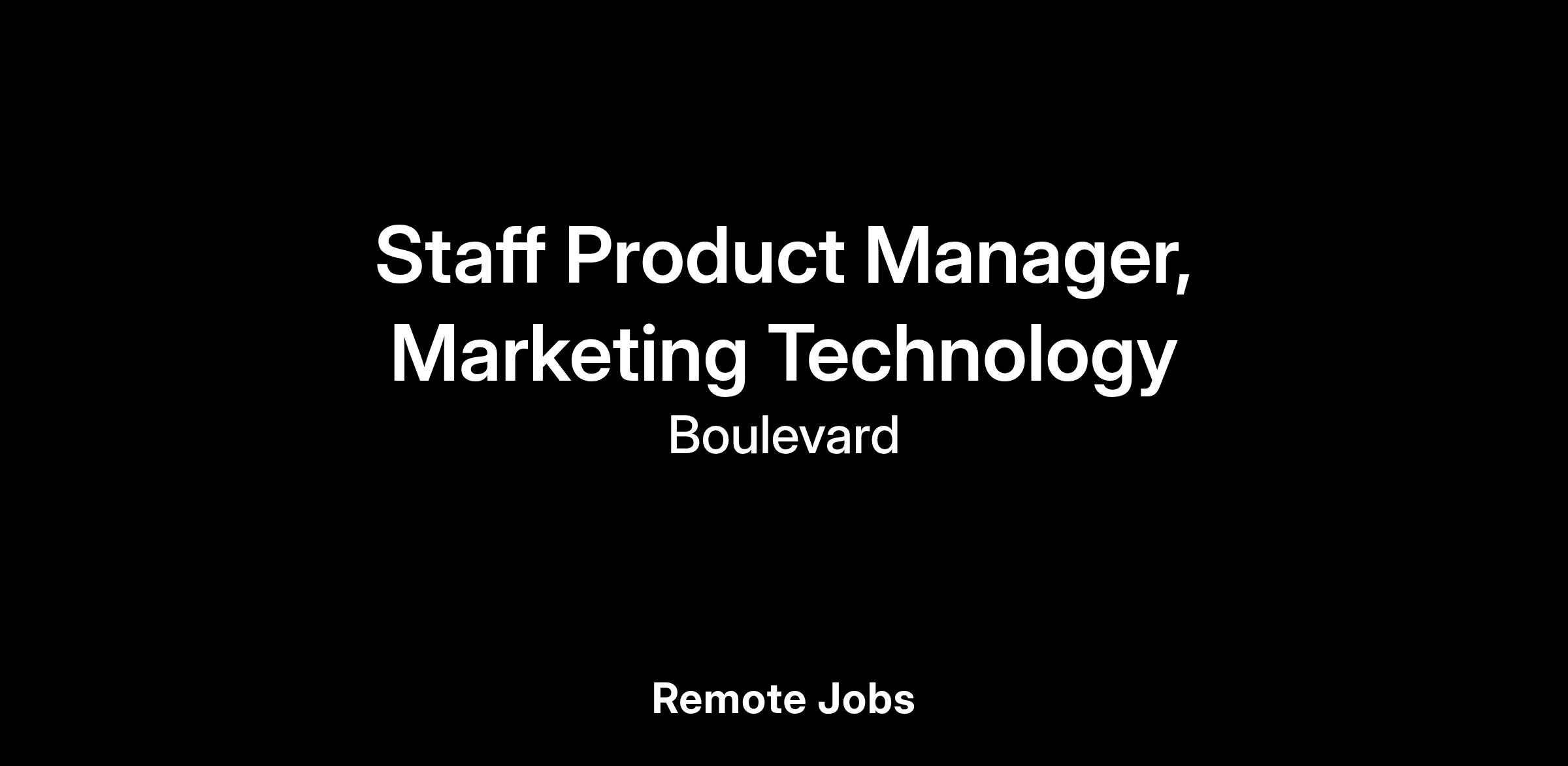 As a Staff Product Manager, you’ll work closely with Boulevard’s executive team and collaborate across engineering, design, data, product marketing, customer success, and sales. You'll help lead the next wave of innovation in how businesses engage with their clients, building capabilities that reach the right people, at the right time, with precision that drives real business outcomes. This is about making bold bets on where marketing is going next, raising the bar for personalization, timing, and effectiveness across the board.