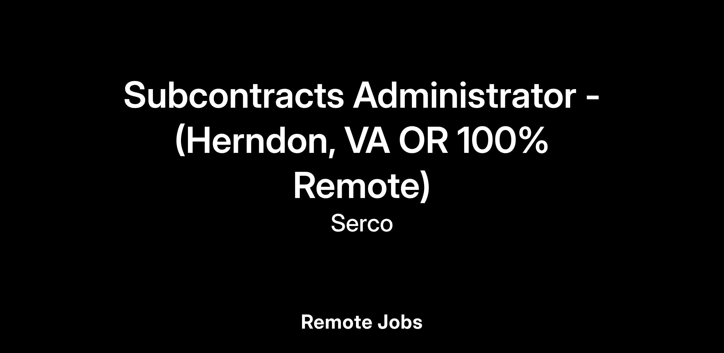 If you are a detail-oriented professional looking for growth opportunities and want to join dynamic procurement team, Serco has a great position to advance your skill-set! The Subcontracts Administrator develops competitive and single/sole source Request For Proposals (RFPs) for federal and commercial services and products of medium complexity; compiles various bid/compliance documents and inspects them for completeness; evaluates bids and completes subcontract / purchase order awards; manages supplier performance issues to resolution; performs subcontract close-out and a variety of other procurement-related tasks.