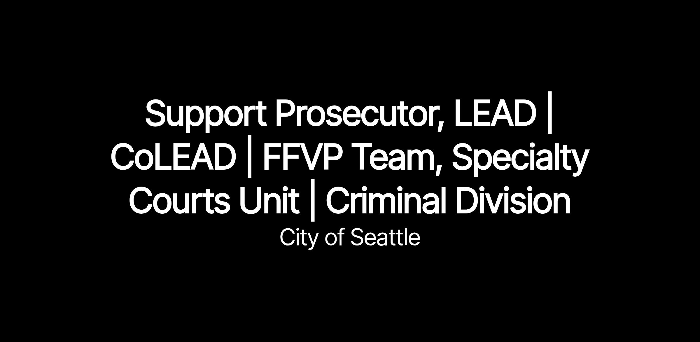 The Criminal Division is seeking a prosecutor to serve as an attorney on the LEAD | CoLEAD | Familiar Faces Vital Programs Team within the Specialty Court Unit. This position will support the Lead Prosecutor and is integral to the Team, which seeks to reduce an individual’s impact on our community by working closely with community partners to address the underlying causes of the individual’s criminal behavior. Supervised by both the Specialty Court Unit Supervisor and under direction from the Team’s Lead prosecutor, this position collaborates with other units within the Criminal Division and with community partners to coordinate legal involvement for enrolled program clients.