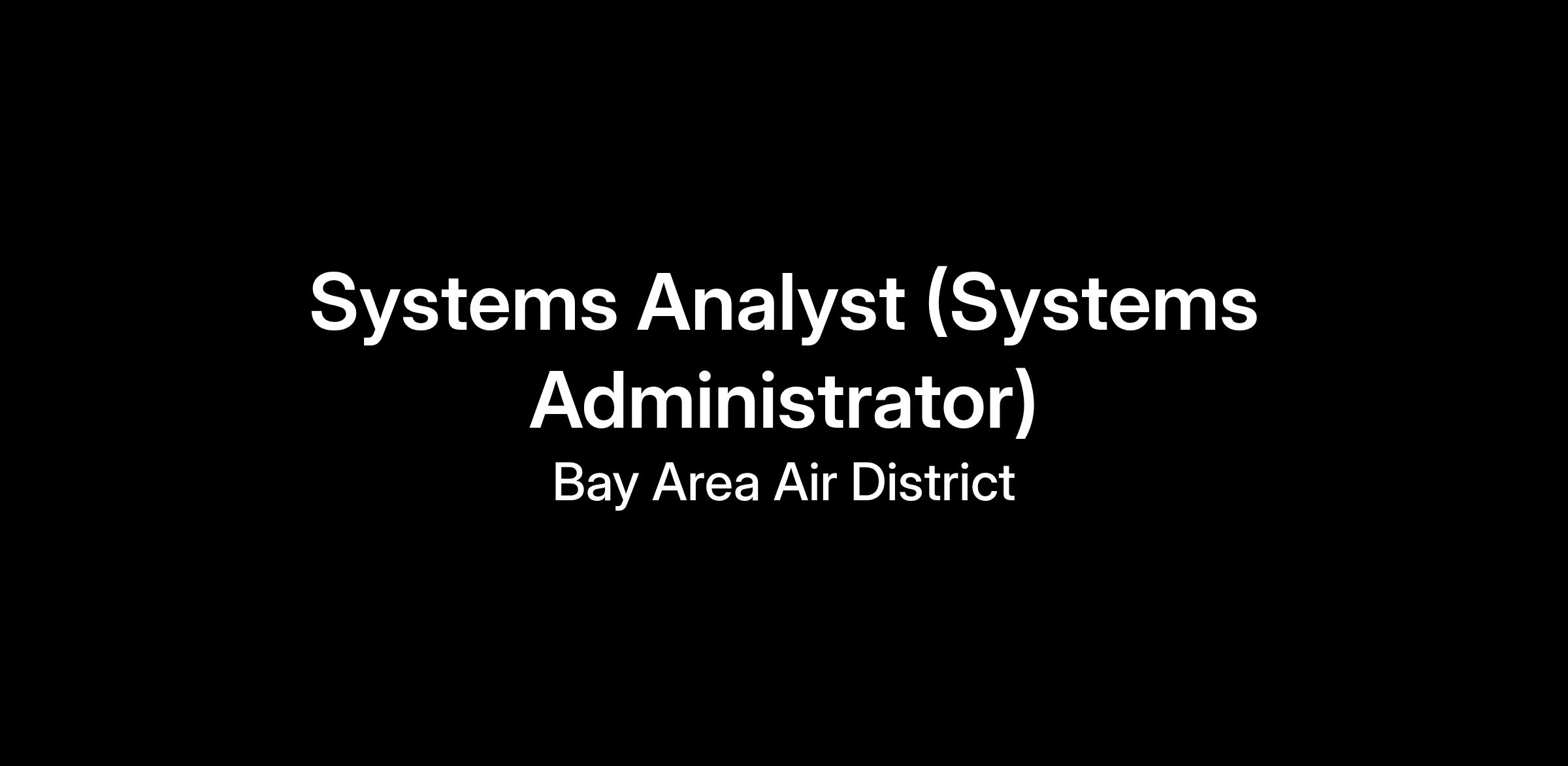 The Air District is currently accepting applications for the position of Systems Analyst in the Information Services Division. This is an open recruitment for two (2) vacancies which are full-time, represented positions.