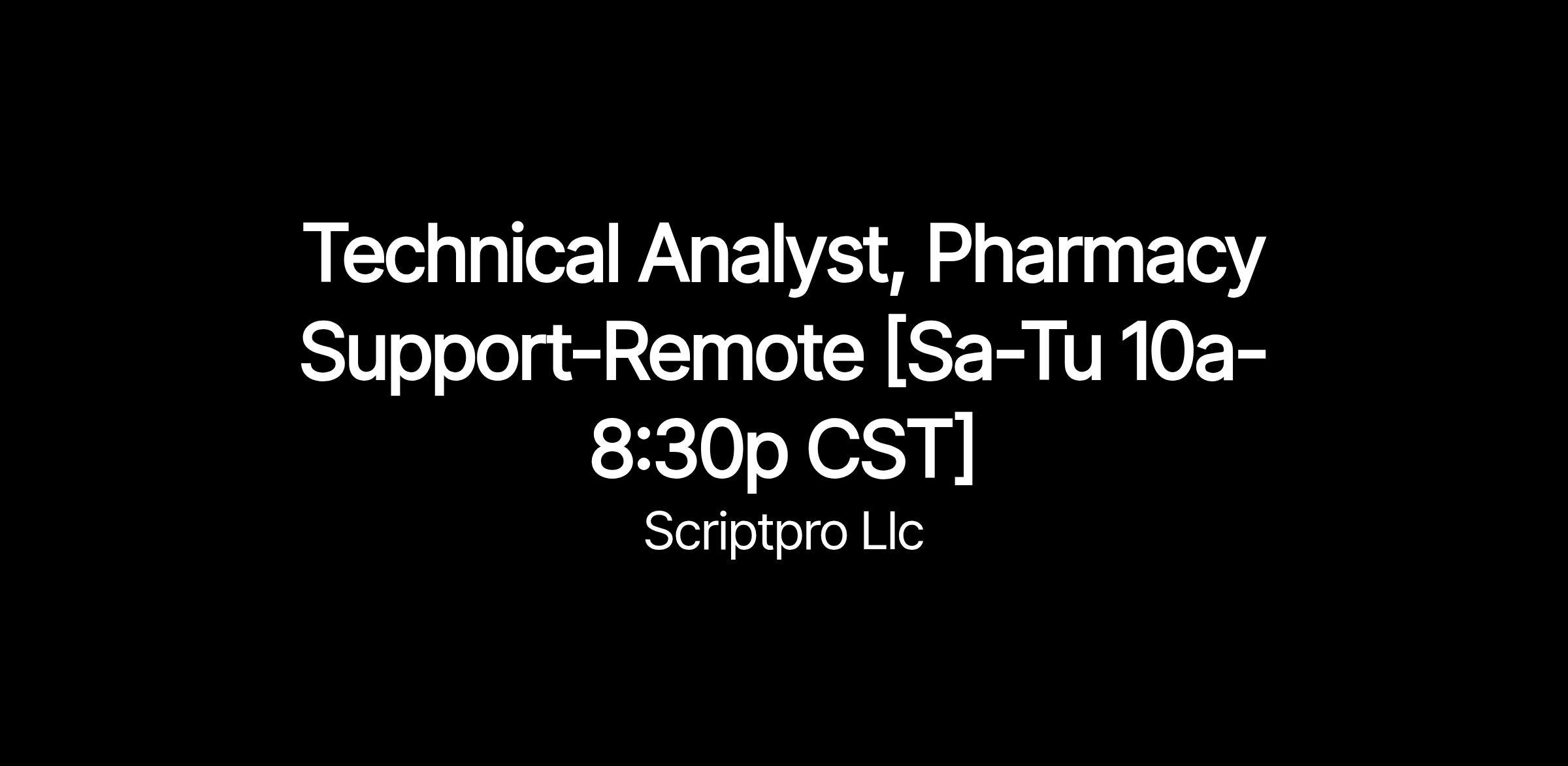 Shift: Saturday through Tuesday 10:00 am - 8:30 pm CST. Regular, punctual, and predictable attendance is an essential function of every job at ScriptPro.