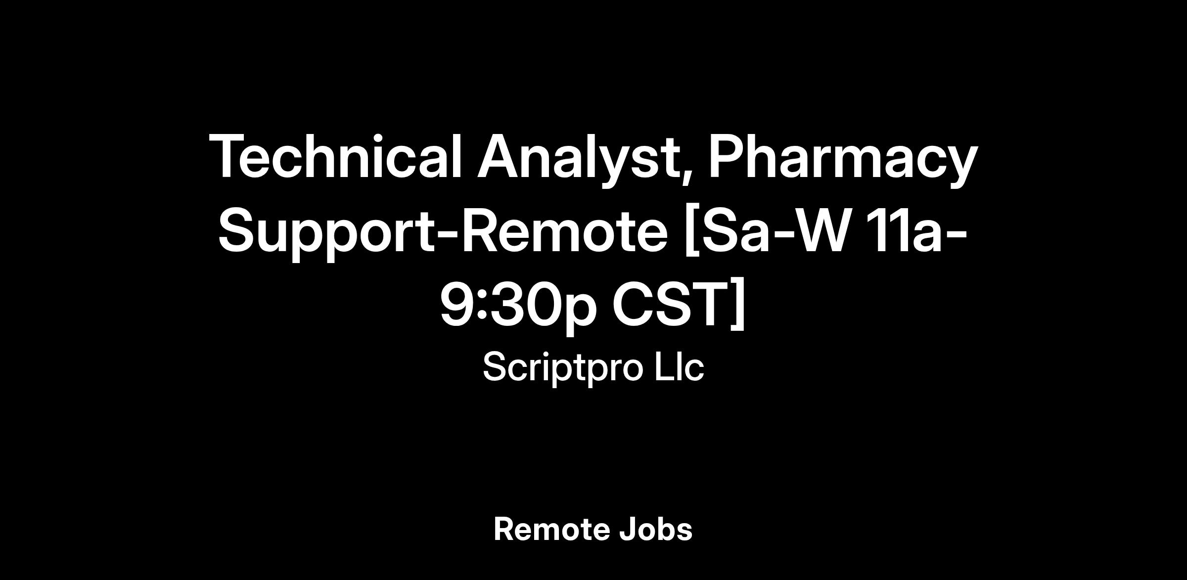 Shift: Saturday through Wednesday from 11:00am - 9:30pm CST. This role is primarily performed remotely, though Kansas City Metro employees may be required to work on-campus periodically according to business need. Regular, punctual, and predictable attendance is an essential function of every job at ScriptPro.