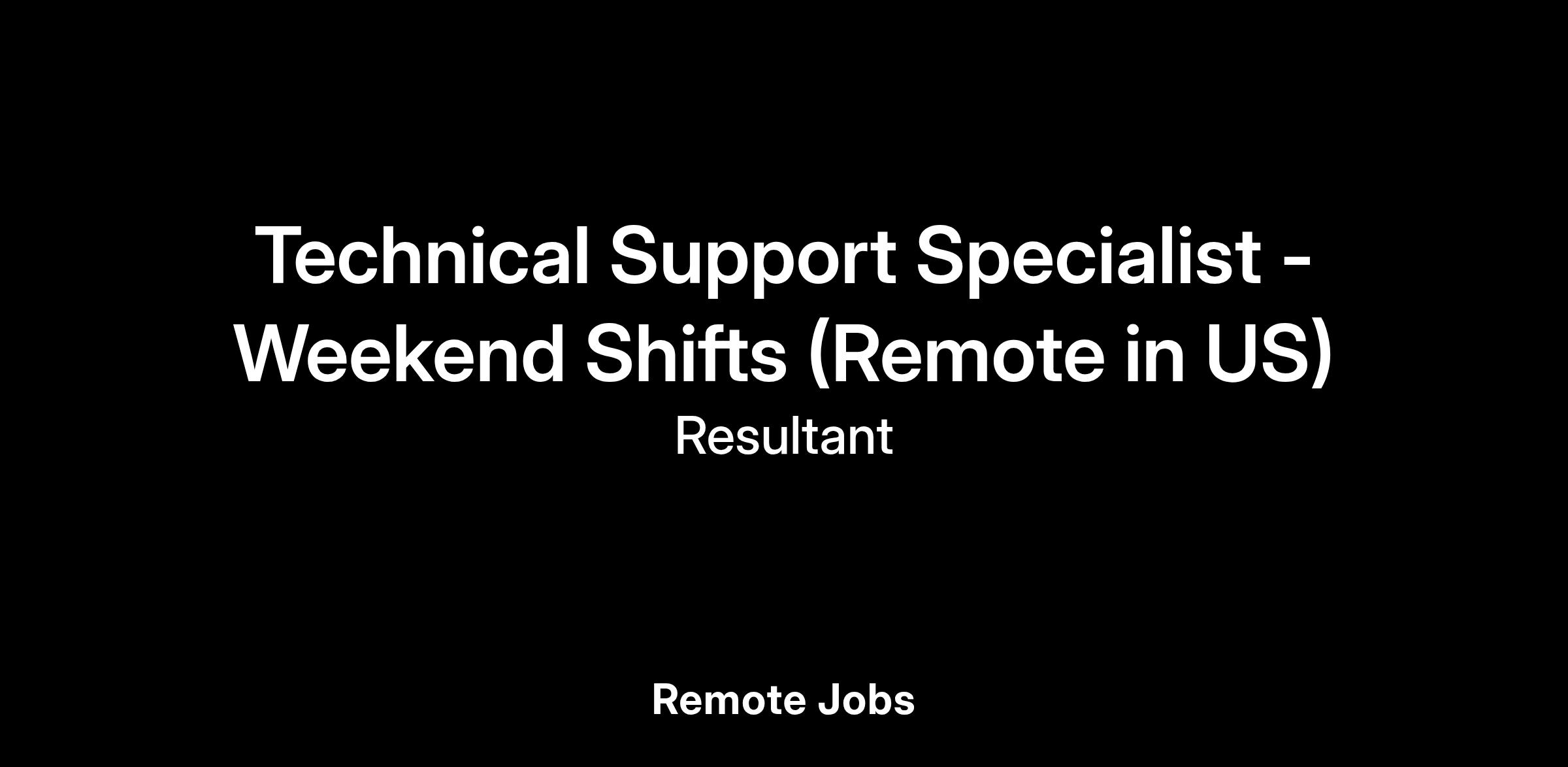 Technical Support Specialist - Weekend Shifts (Remote in US)