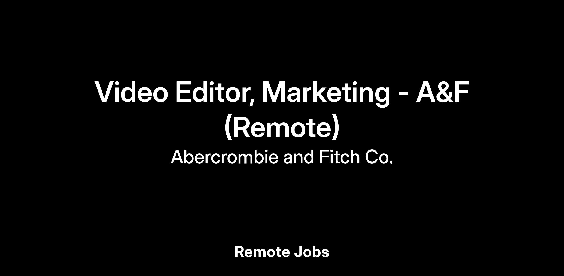 Abercrombie & Fitch Co. seeks a talented individual to be a Video Editor for the Abercrombie & Fitch brand. As a member of the A&F video team, this person will work with the team to build content from A&F original content to convey a brand message to both the internal and external customer through video editing. Candidates must be creative, collaborative, highly organized and immersed within the world of video and social media. The successful candidate must be an innovative problem solver, self-starter, and a creative marketer with a strong sense of urgency.
