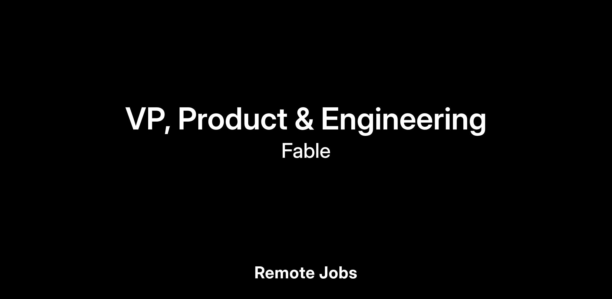 Fable is an inclusive workplace. If you are facing any accessibility requirements or concerns regarding the hiring process or employment with us, please fill out this form or email us at jobs@makeitfable.com and include the subject line “Accessibility accommodation for VP, Product & Engineering job application.”