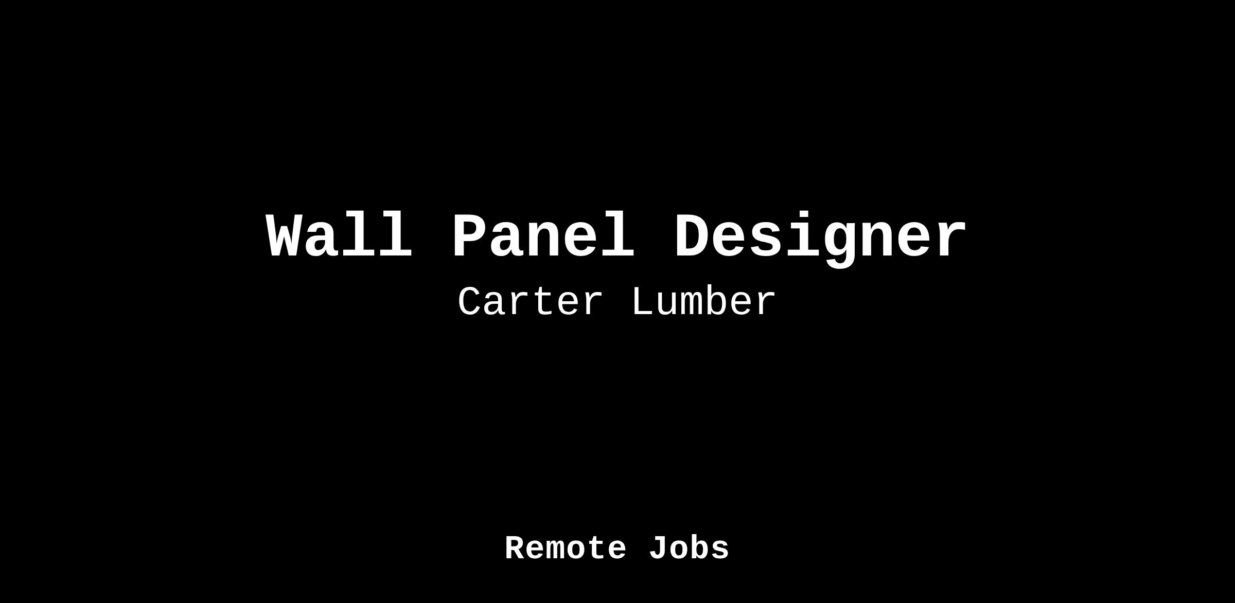 A Carter Lumber Wall Panel Designer is responsible for designing plans for the quoting and production of wall panels. Ensures drawings are produced accurately and timely based off of blueprints provided by customers. Requires the knowledge of commonly used framing concepts and practices within the construction industry. A strong belief in the mission and goals of the company are necessary to this position.