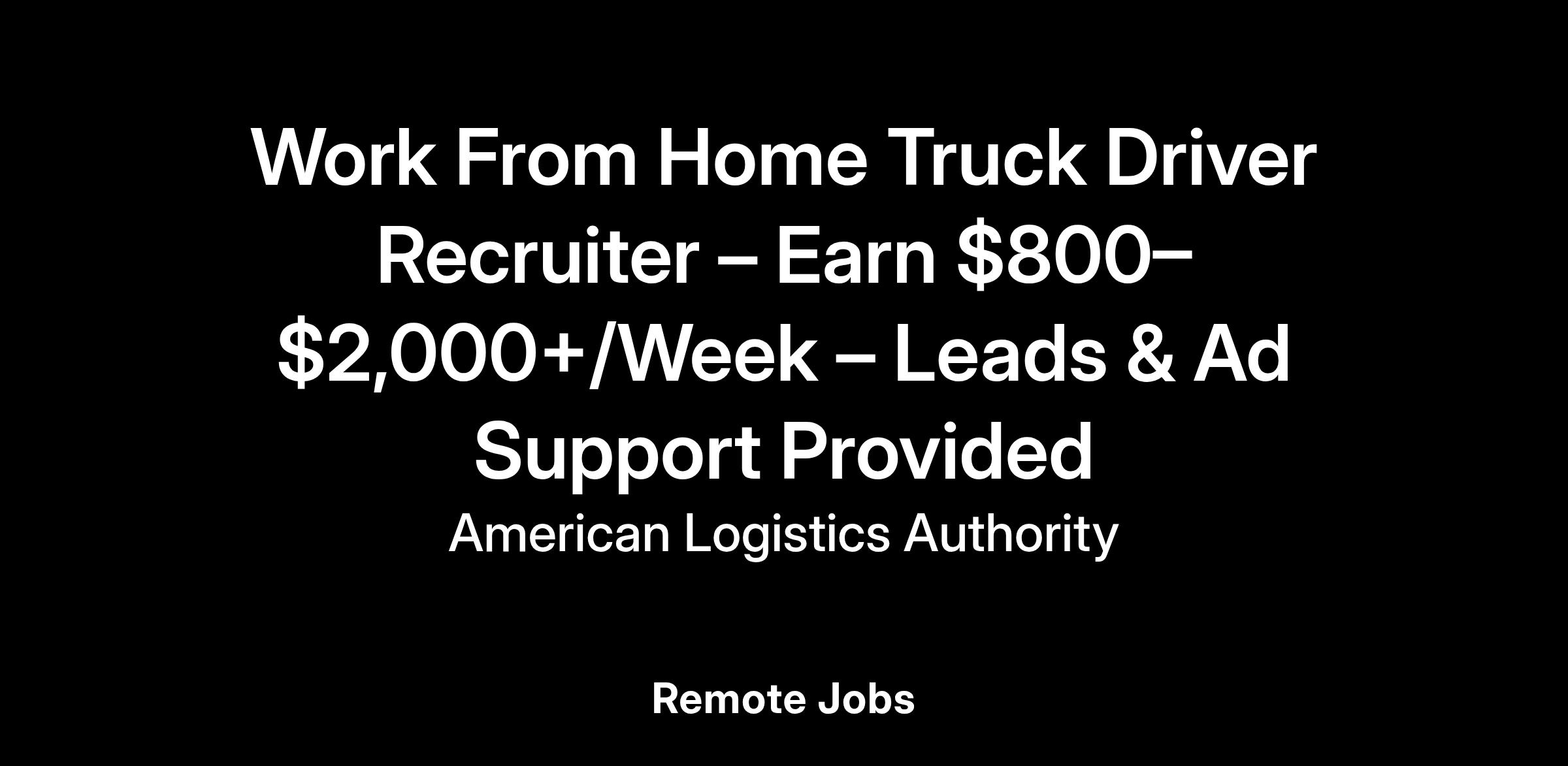 Start earning $800–$2,000+/week while working from home with leads and ad support already in place. Your career in trucking starts here.